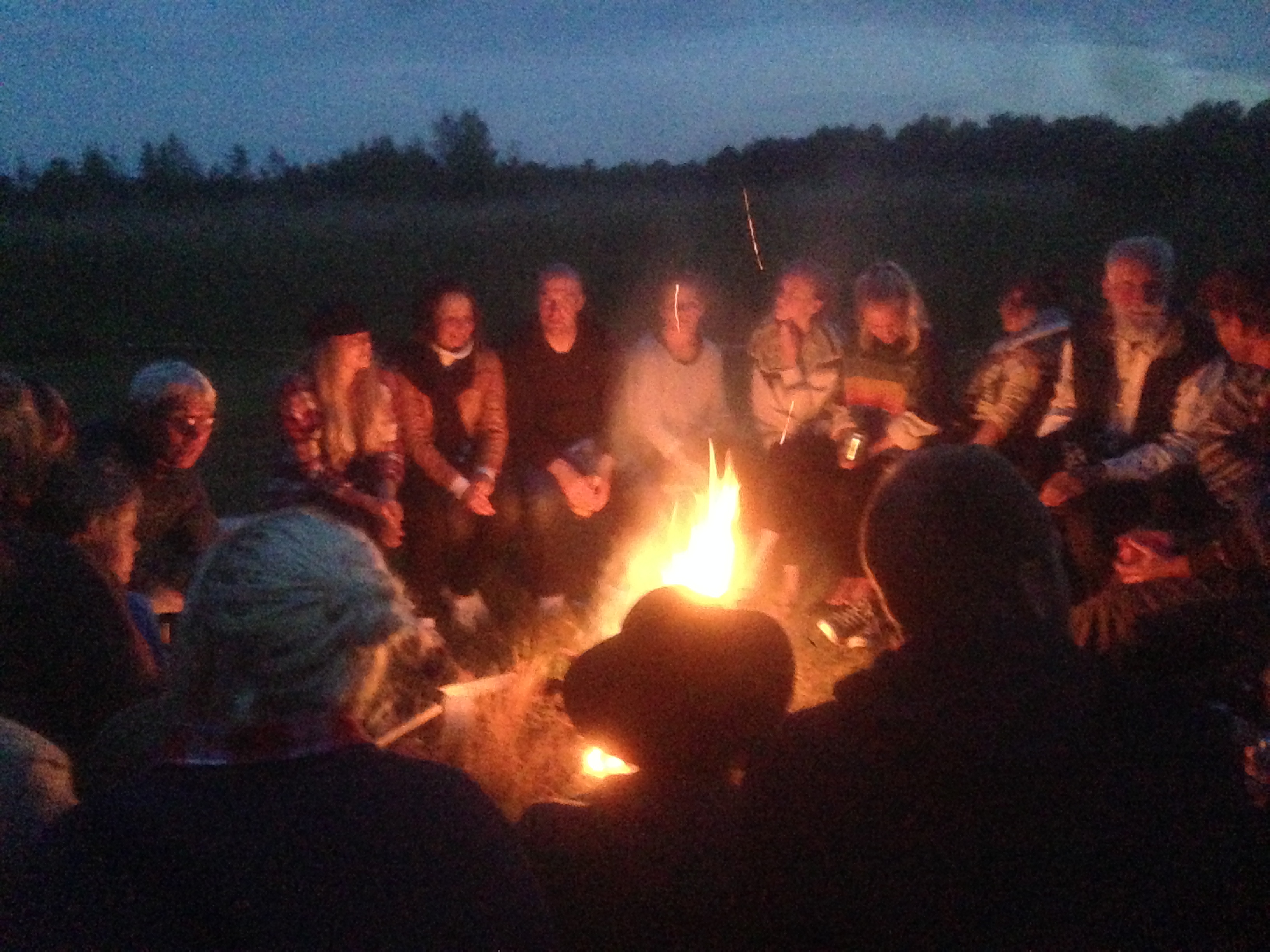 Kring lägerelden samlades många i sommarnatten.